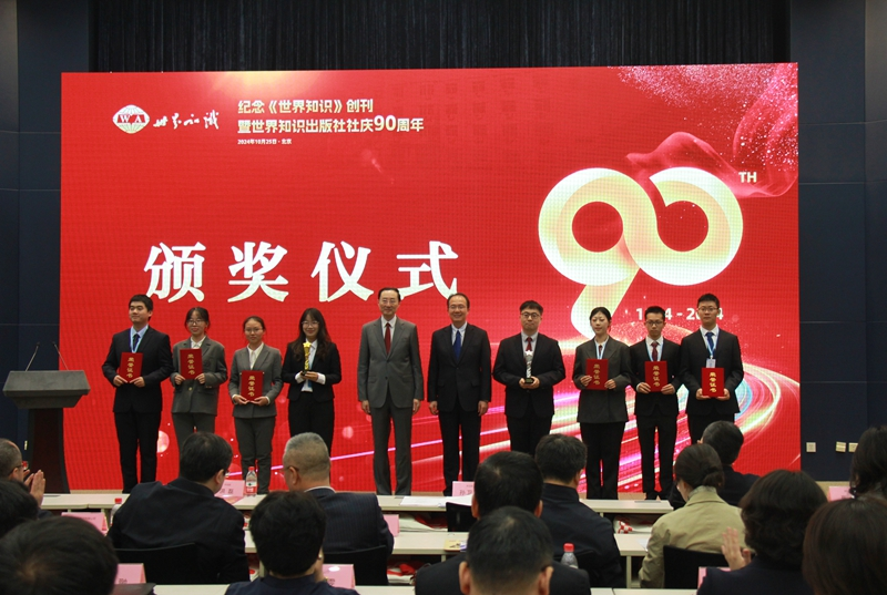 次日,在纪念《世界知识》创刊暨世界知识出版社社庆90周年座谈活动期间,外交部副部长孙卫东、外交部部长助理洪磊、中国期刊协会会长吴尚之、中国出版协会副理事长陆彩荣、世界知识出版社董事长崔春、北京王府公益基金会理事长潘军为获奖队伍颁奖。