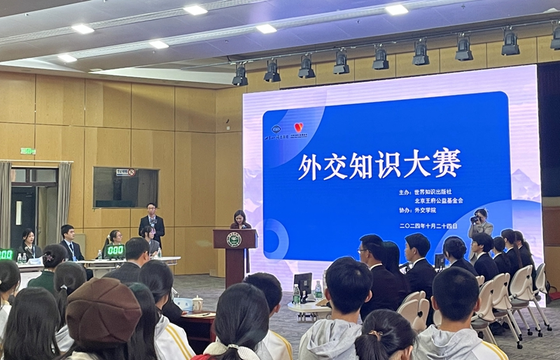 新华网北京10月26日电(何媛 刘钟灵)在《世界知识》杂志创刊暨社庆90周年之际,世界知识出版社会同北京王府公益基金会等单位共同主办的“外交知识大赛”决赛24日在外交学院成功举办。本次活动旨在促进外交知识进高校,助力国际关系学科建设和学术研究,参赛学生通过比赛、研学等系列活动,收获满满。