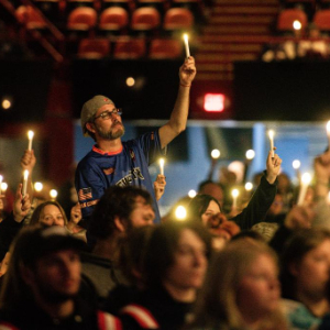 10月25日,人们在美国缅因州刘易斯顿市手举蜡烛悼念枪击案遇难者。