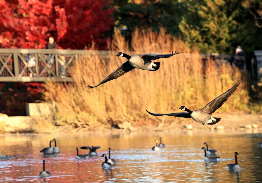 这是10月18日在加拿大安大略省拍摄的生活在马克姆市周边的加拿大雁。新华社发(杨树摄)