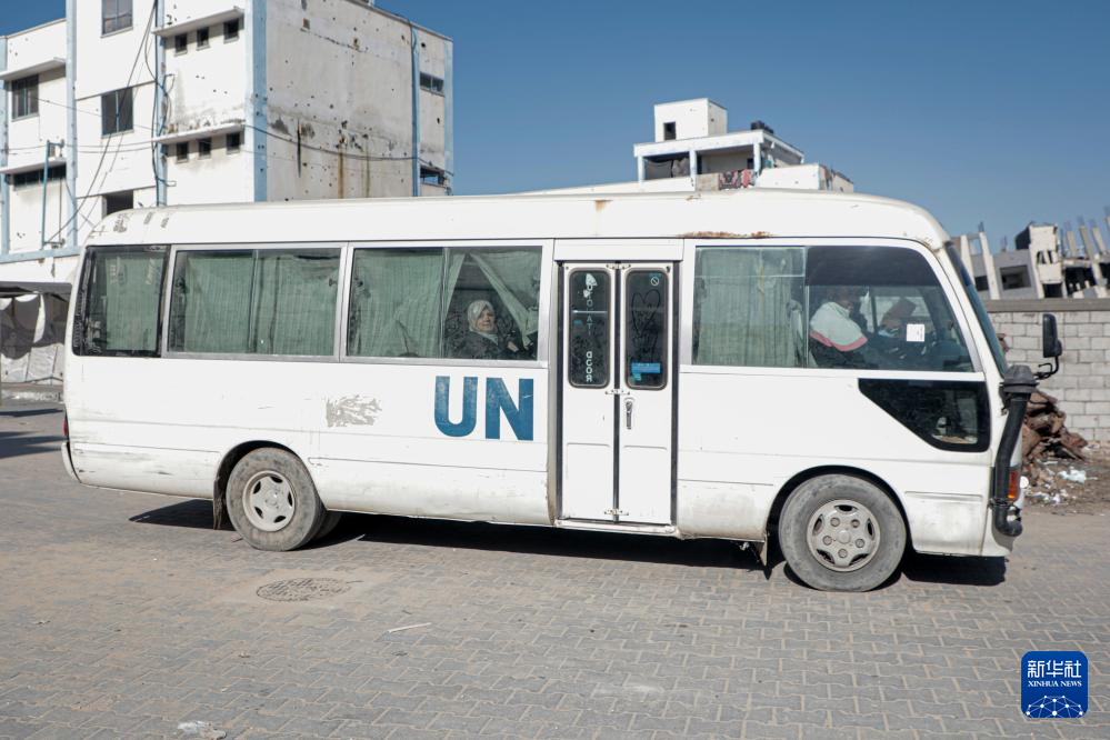 这是10月29日在加沙地带汗尤尼斯拍摄的一辆联合国机构的车辆。新华社发(里泽克·阿卜杜勒贾瓦德摄)
