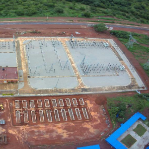 这是8月3日在科特迪瓦本贾利省拍摄的电池储能项目建筑工地(无人机照片)。