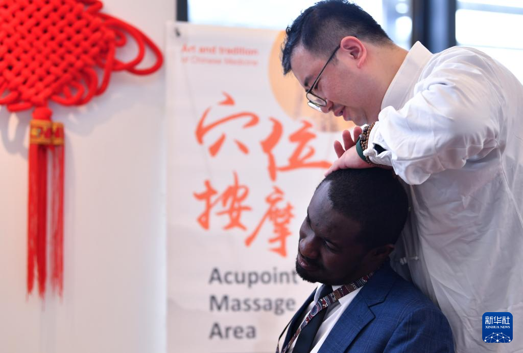 本次活动设立了穴位按摩区、针灸体验区、把脉咨询区、五行养生区和互动问答区等区域。记者在现场看到,各区域都吸引了众多来自各国的人士排起长队。拉莎·穆扎赫姆说,这是她第一次体验中医的把脉诊断,之前就有朋友向她推荐过中医的诊疗方法,这次能在日内瓦亲身体验,机会十分难得。
