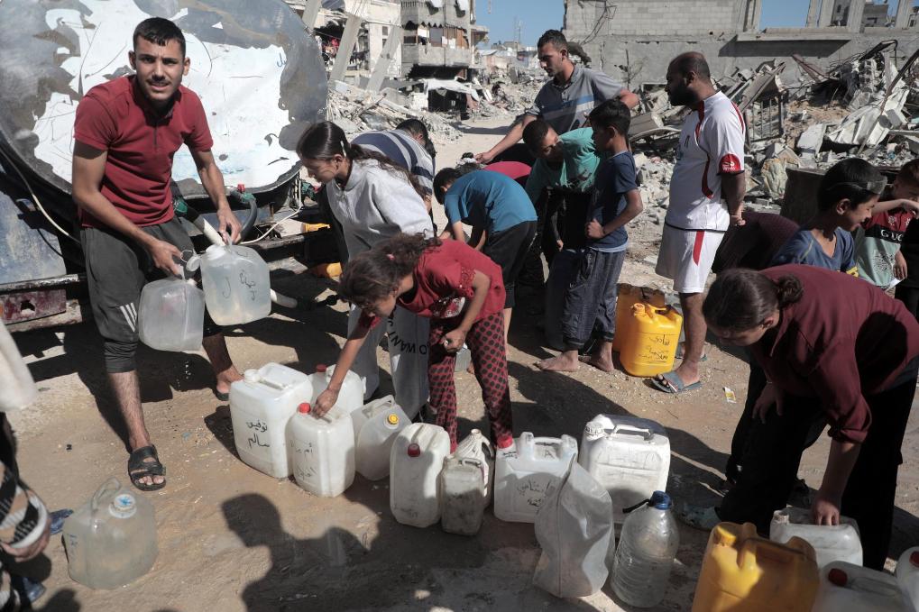10月20日,人们在加沙地带南部城市汗尤尼斯取水。新华社发(里泽克·阿卜杜勒贾瓦德摄)
