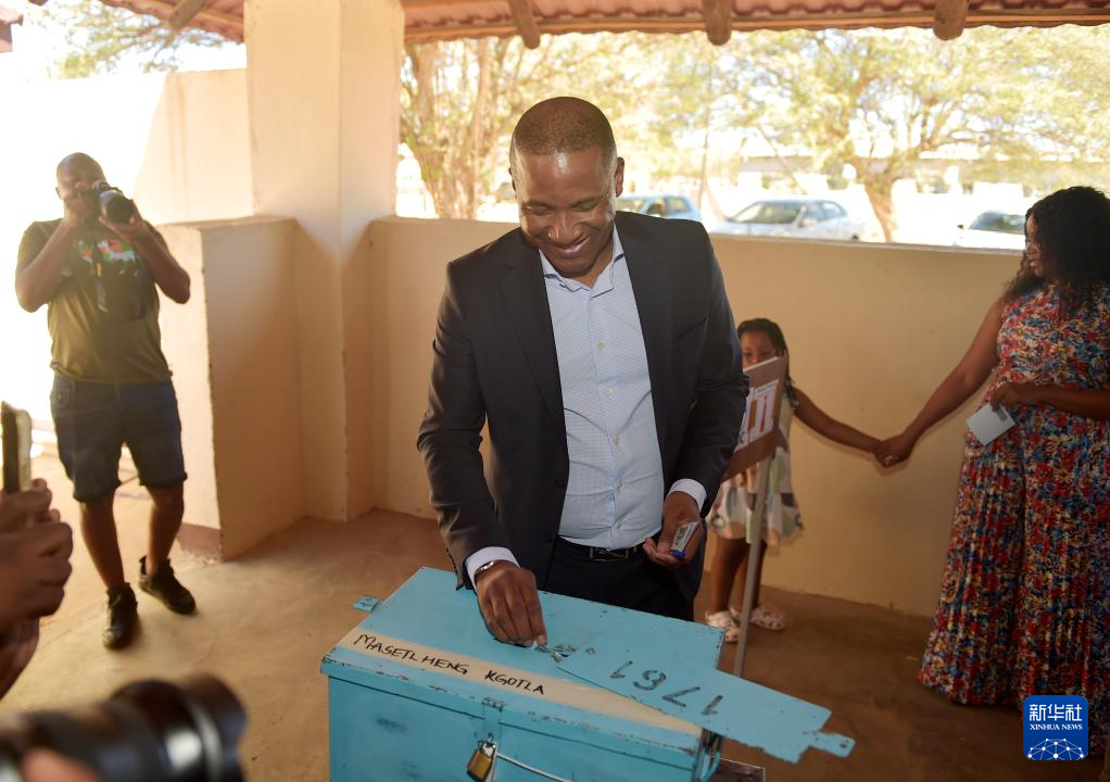 10月30日,博茨瓦纳现任总统、民主党候选人马西西在南部区莫舒帕村的一处投票站投票。新华社发(恩古贝瓦纳摄)