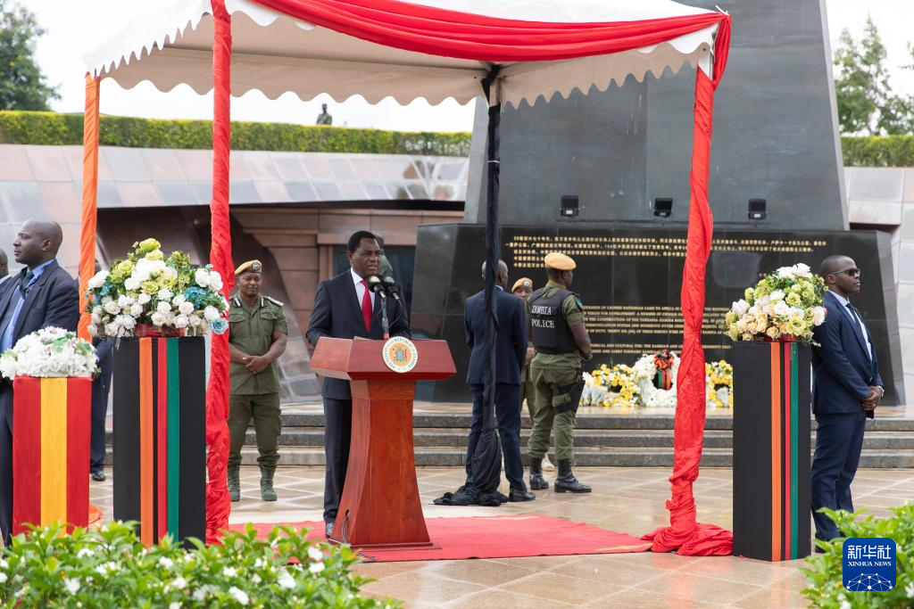 当地时间29日,中赞建交60周年纪念活动在位于赞比亚卢萨卡省琼圭地区的坦赞铁路纪念园隆重举行。