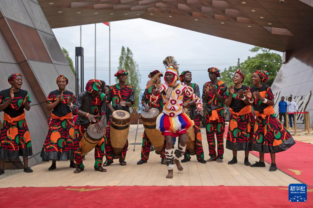 10月29日,在赞比亚卢萨卡省琼圭地区的坦赞铁路纪念园,演员在中赞建交60周年纪念活动上表演。