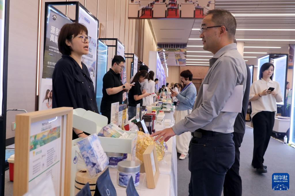 7月24日,展商与客商在展前供需对接会场上交流洽谈。