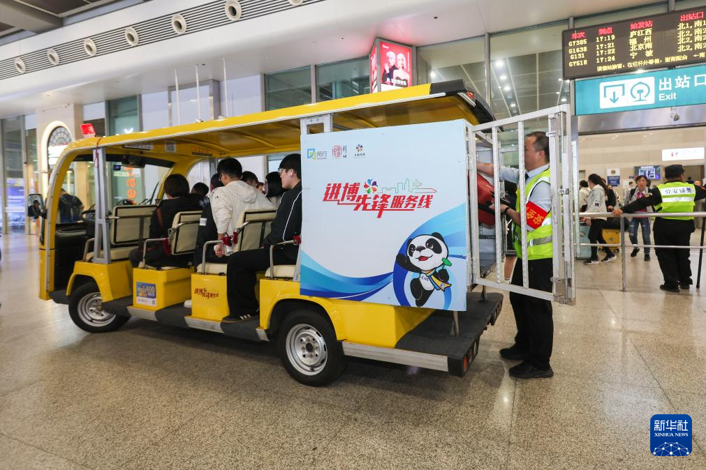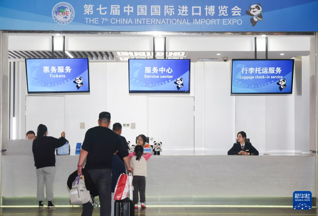 第七届中国国际进口博览会开幕在即,上海虹桥站在站厅内设立进博会服务专区,设立票务服务、服务中心、行李托运服务窗口,解决旅客出行问题。此外,已连续开行6年的上海虹桥站进博直通车,今年仍将服务进博会,参展旅客和相关工作人员出示相关证件即可免费搭乘,直接乘坐进博直通车前往国家会展中心(上海)。