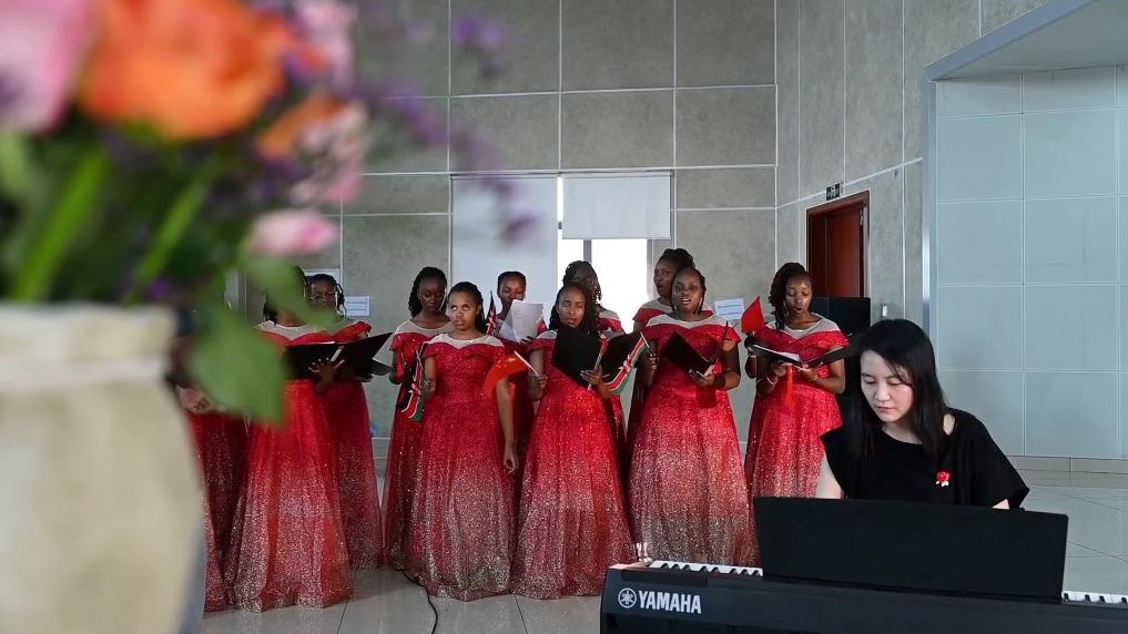 2024年,中非合作论坛峰会期间,许嘉桐还和同事们一起开展了一系列的直播、短视频报道。峰会后不久,她来到肯雅塔大学孔子学院,化身一名伴奏者,参与到师生的表演中。
