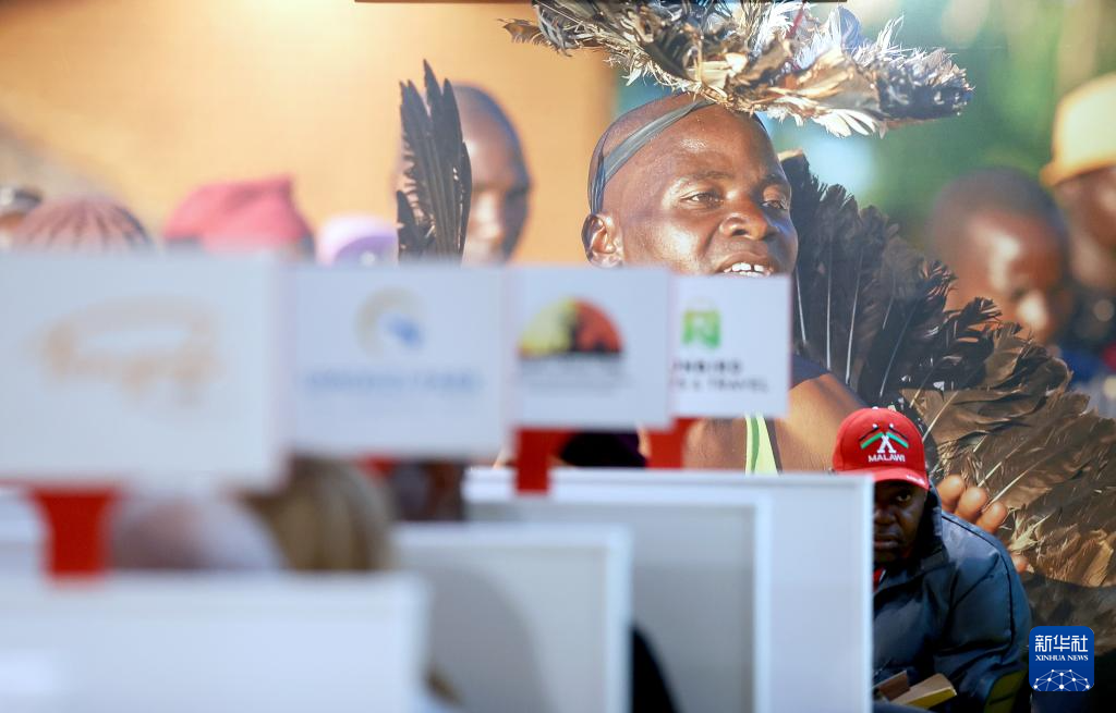 11月5日,一名男子坐在2024年英国伦敦世界旅游交易会马拉维展区。