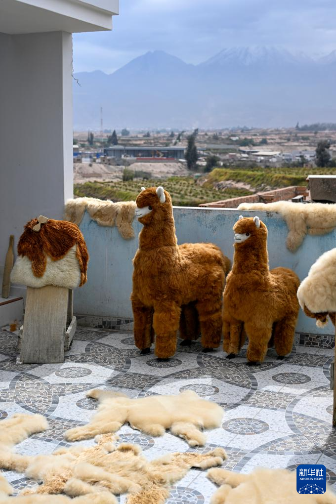 这是6月20日在秘鲁阿雷基帕拍摄的羊驼毛制品手工艺人奥斯瓦尔多·马马尼家的羊驼玩偶。