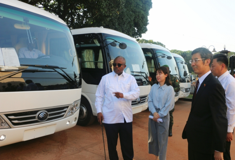 车辆交接仪式中,杨仁火向恩巴洛交接“金钥匙”,并同几比总统府秘书长费尔南德斯签署车辆交接证书。恩巴洛在杨仁火陪同下参观了援助车辆,并称赞了中国汽车的优良品质。