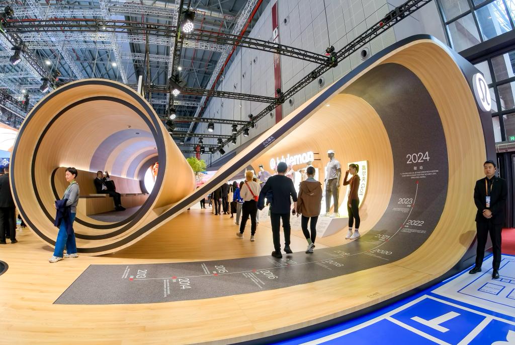 11月7日,观众在进博会消费品展区露露乐蒙展位参观。新华社记者 张铖 摄