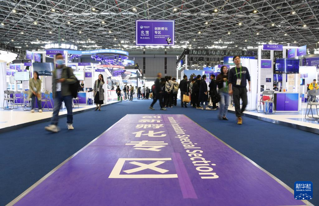 11月9日,人们在第七届进博会创新孵化专区参观。