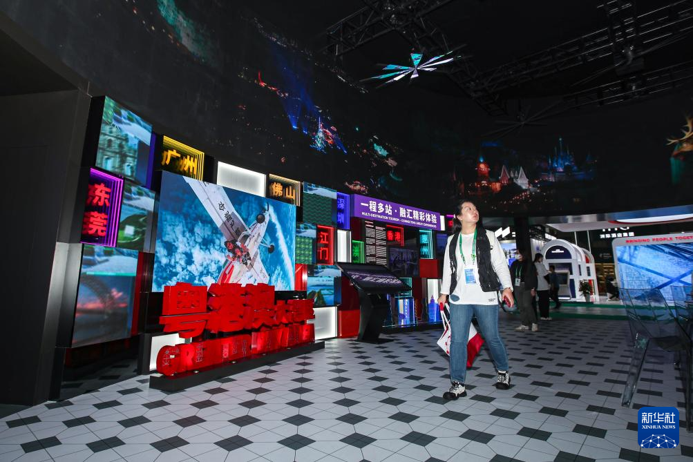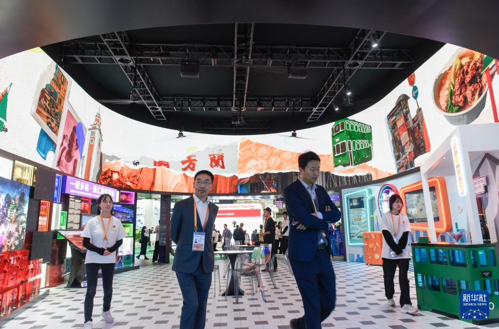 11月7日,参会者在第七届进博会服务贸易展区香港旅游发展局展台参观。