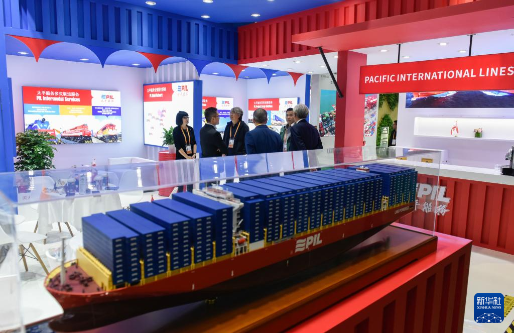 这是11月7日拍摄的第七届进博会服务贸易展区太平船务展台。