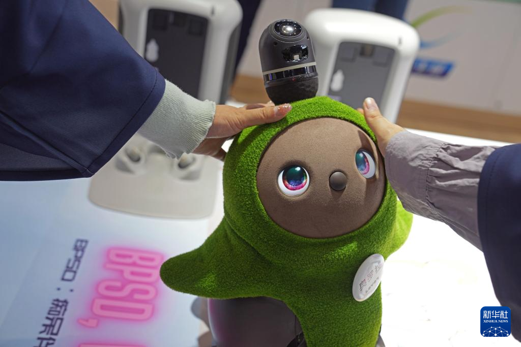 这是11月9日在第七届进博会服务贸易展区伊藤忠商事展台拍摄的痴呆症护理辅助机器人。