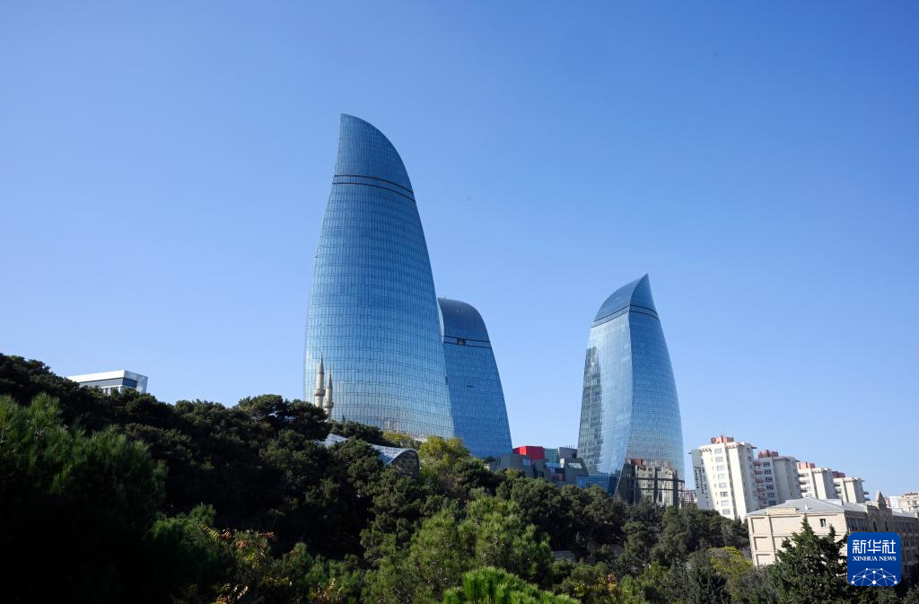 这是11月1日拍摄的阿塞拜疆巴库地标建筑之一——“火焰塔”。新华社发(托菲克·巴巴耶夫摄)