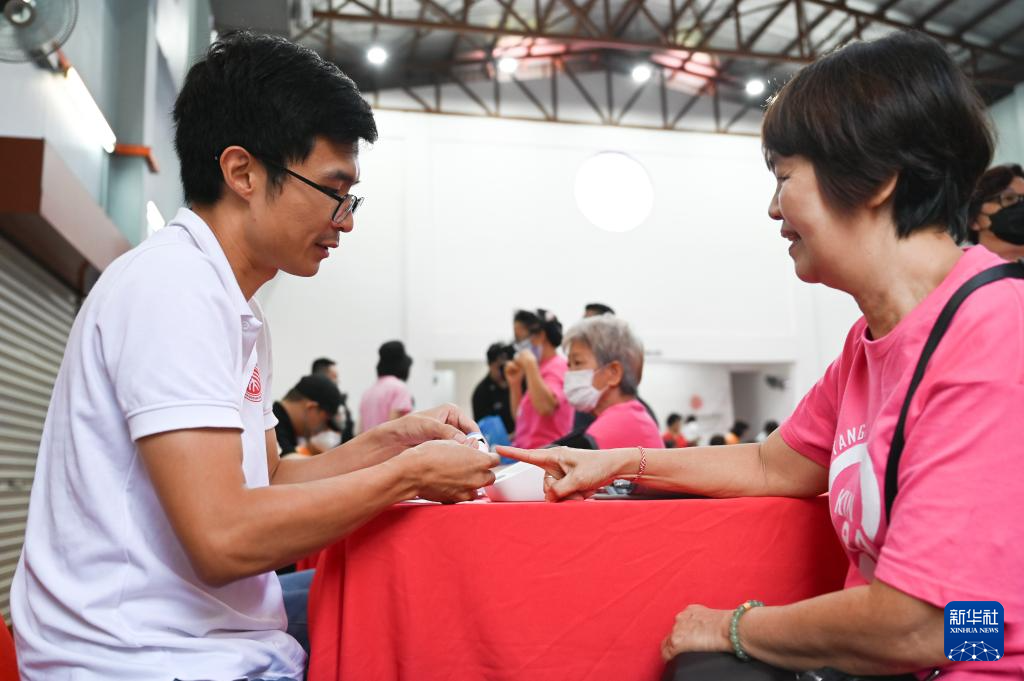 11月9日,在马来西亚雪兰莪州蒲种再也,当地民众在义诊活动现场检测血糖情况。新华社发(李潇然摄)