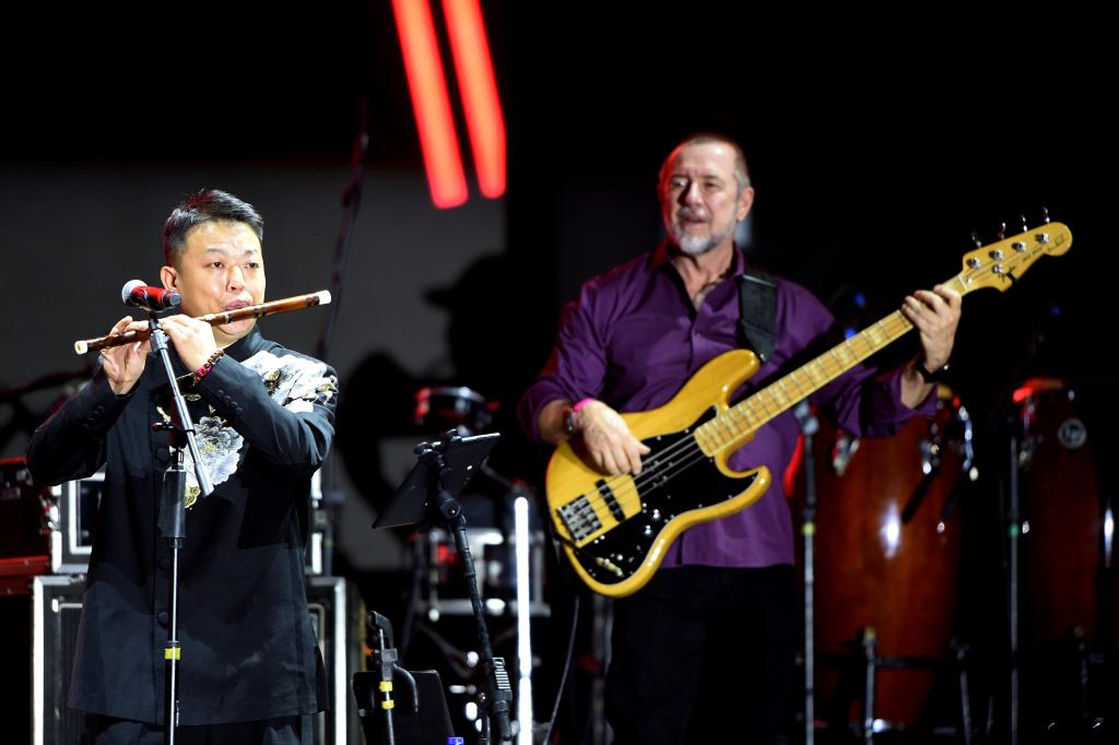 8月17日,在巴西首都巴西利亚,来自中国和巴西的音乐家在沙滩艺术节中国日活动上表演合奏。新华社发(卢西奥·塔沃拉摄)