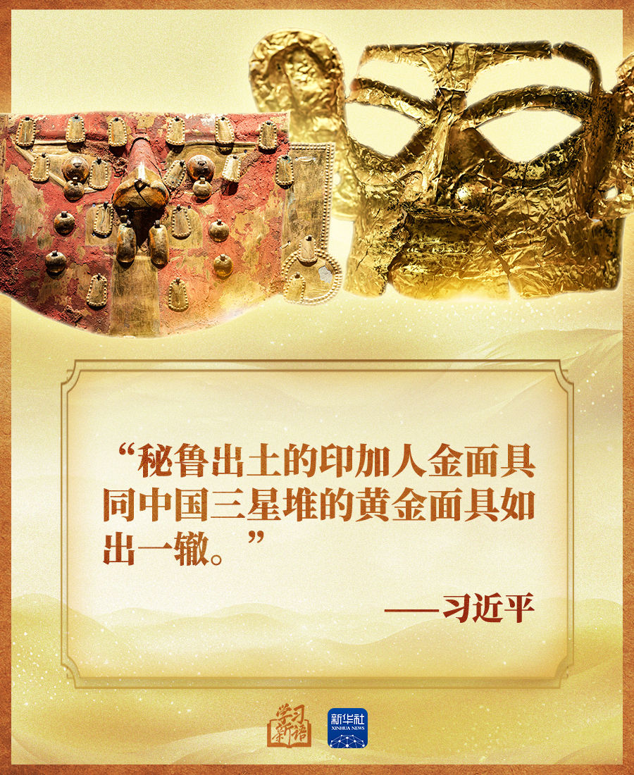 “中外考古学界认为,中华文明和美洲文明实际上是同一祖先的后代在不同时代、不同地点的产物。文明的智慧让我们理念相近、心灵相通。”