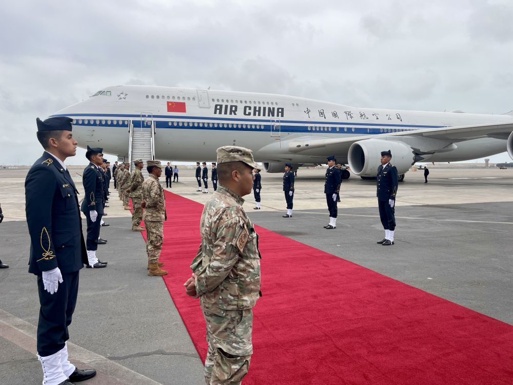 当地时间11月17日,国家主席习近平乘专机离开秘鲁利马。