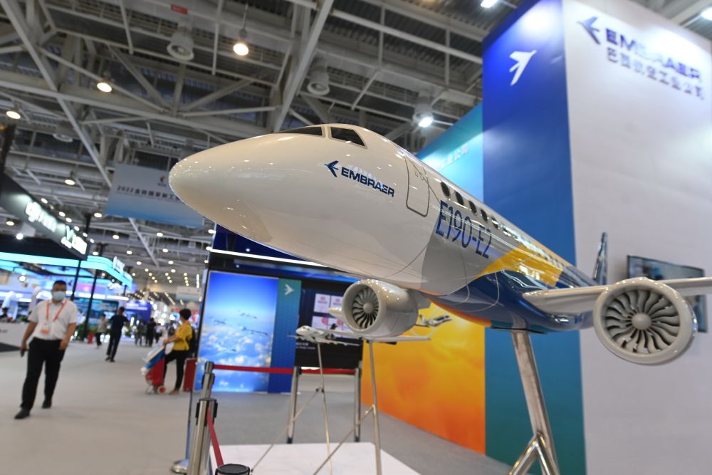 2022年9月8日,第二十二届中国国际投资贸易洽谈会在福建厦门开幕。巴西航空工业公司在展位展出了E190-E2飞机模型。