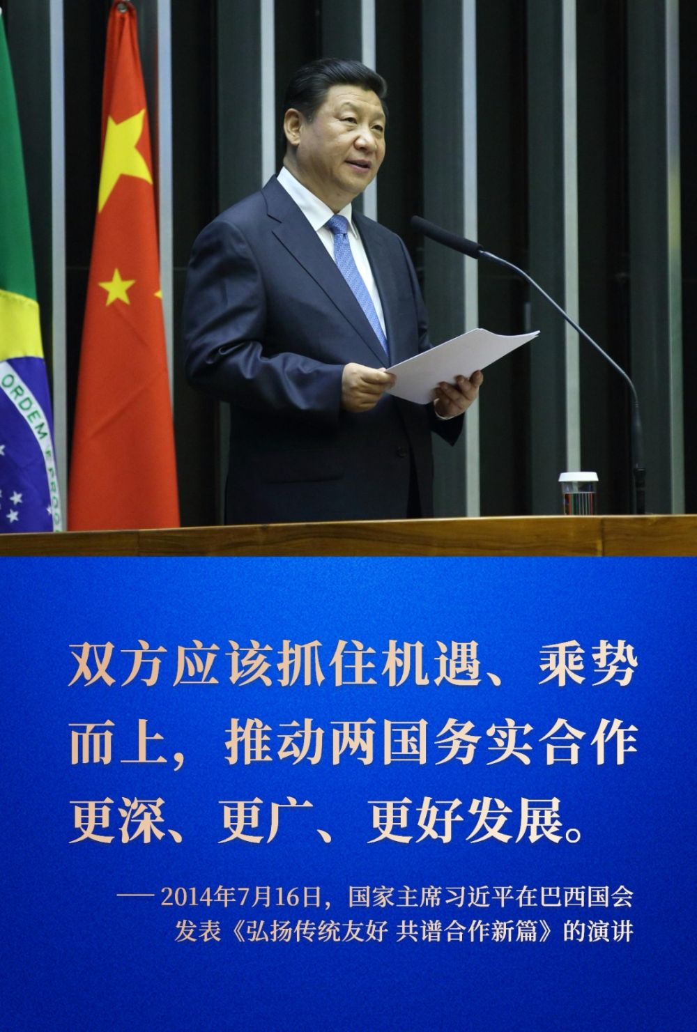 中国和巴西同为发展中大国和重要新兴市场国家,互为全面战略伙伴。习近平主席用“发展中大国关系典范”描述中巴关系,并多次谈到两国要深化务实合作,促进共同发展。