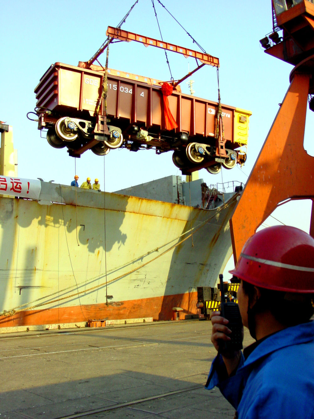 2003年10月23日,中国向巴西出口的首批铁路货车从上海张华浜港启运。这是中国首次向南美出口铁路货车。