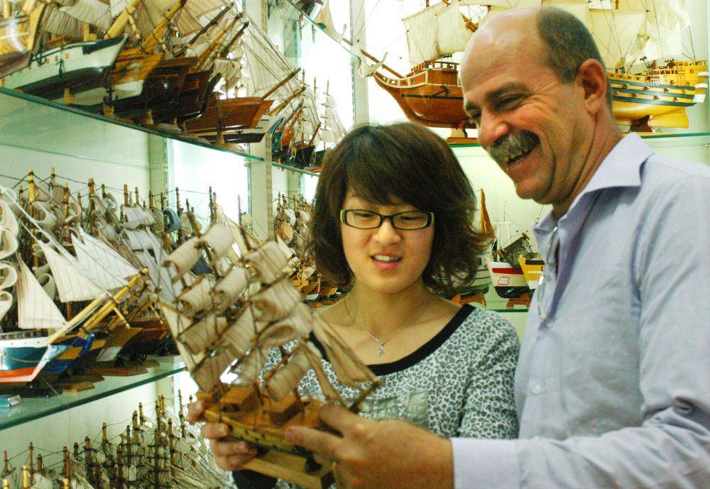 2009年3月31日,一名巴西客商在浙江义乌国际商贸城采购工艺帆船。