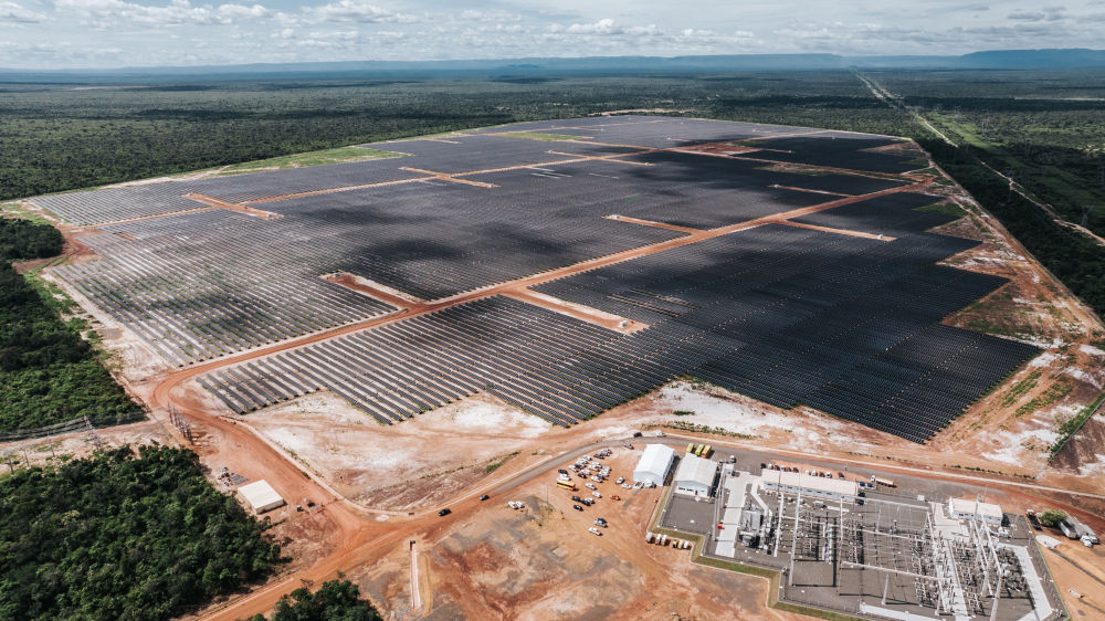 2024年6月7日,由中国国家电力投资集团公司巴西公司投资并主导建设的巴西马兰加图光伏电站举行投产仪式。这是无人机拍摄的马兰加图光伏电站。