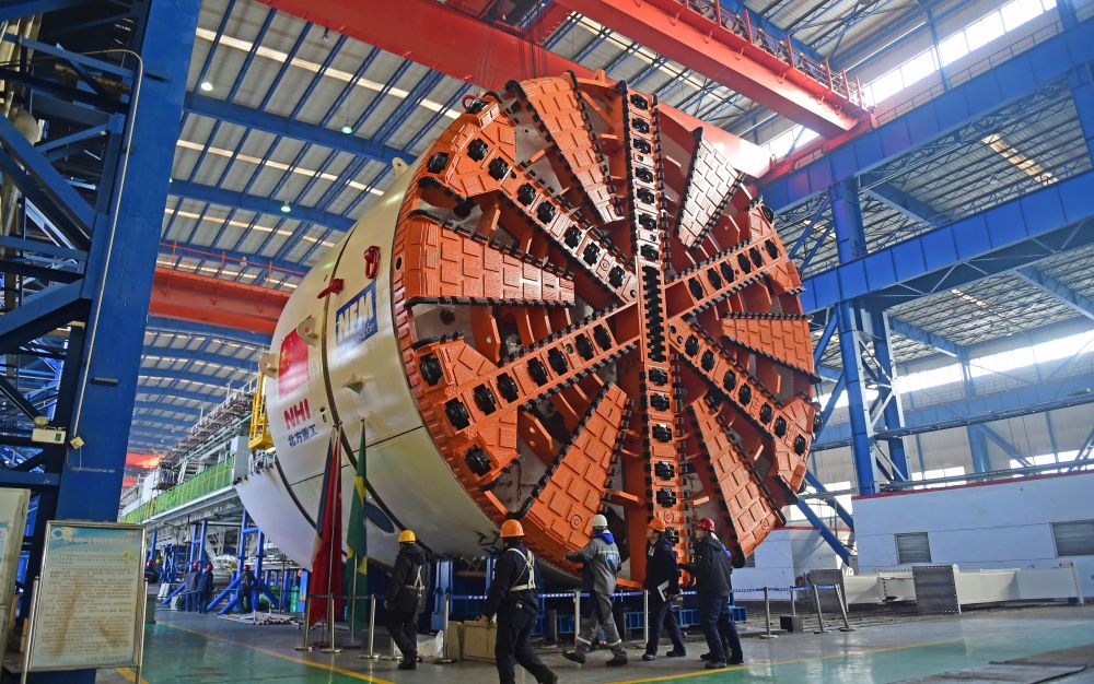 这是在辽宁沈阳北方重工集团拍摄的即将出口到巴西圣保罗的盾构机(2016年1月28日摄)。