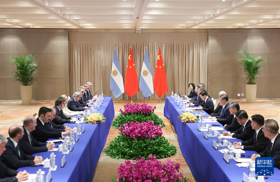 新华社里约热内卢11月19日电(记者孙浩 朱婉君)当地时间11月19日上午,国家主席习近平在里约热内卢出席二十国集团领导人峰会期间会见阿根廷总统米莱。