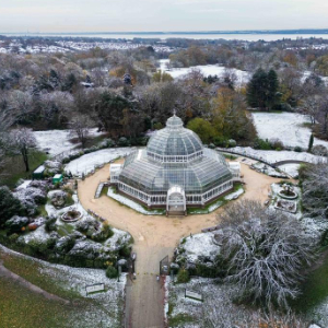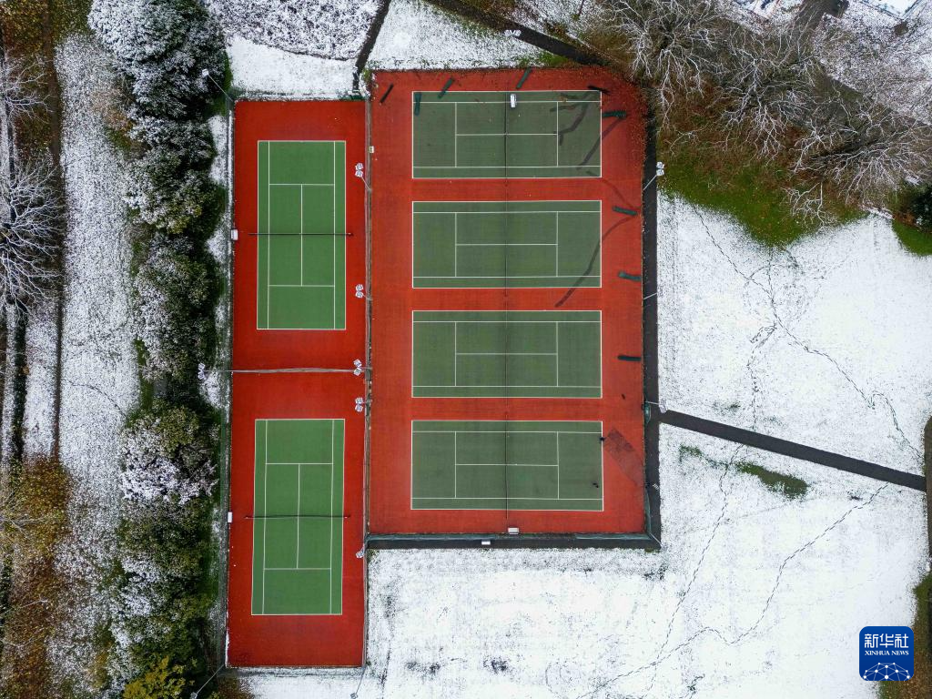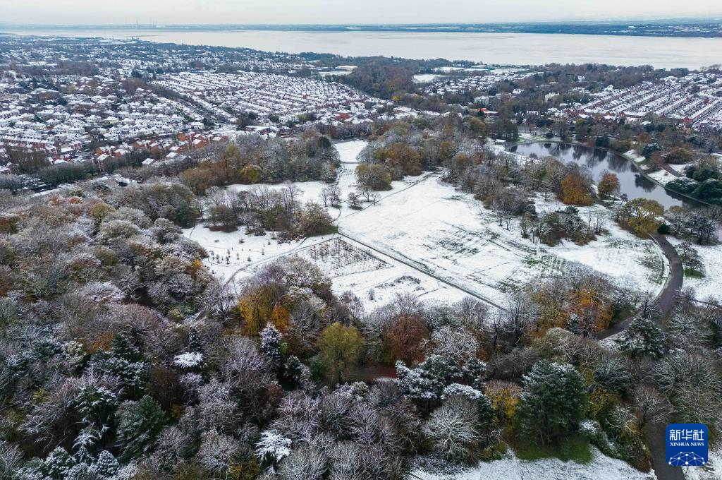 这是11月19日在英国利物浦塞夫顿公园拍摄的雪后景色(无人机照片)。