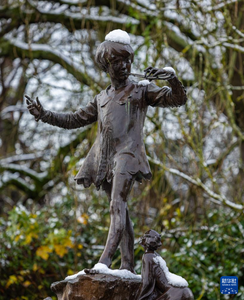 这是11月19日在英国利物浦塞夫顿公园拍摄的彼得潘雕像。