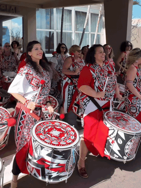 几十名巴塔拉艺术家演奏热情奔放的巴西特色鼓乐。