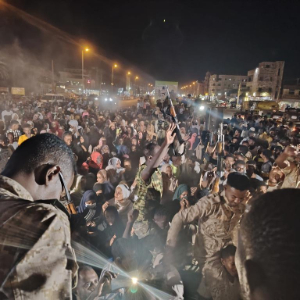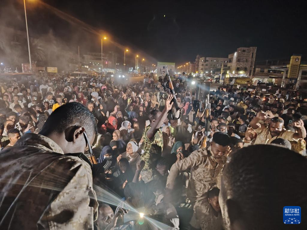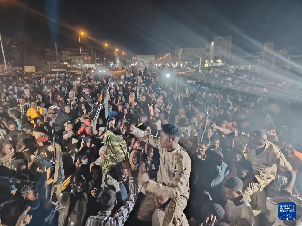 11月23日,在苏丹首都地区恩图曼市,民众自发走上街头,庆祝苏丹武装部队从苏丹快速支援部队手中收复辛贾市。