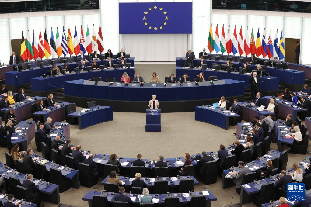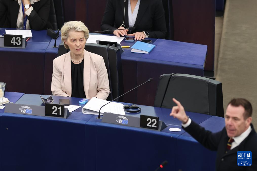 11月27日,在法国斯特拉斯堡,冯德莱恩(中)在欧洲议会会议上讲话。