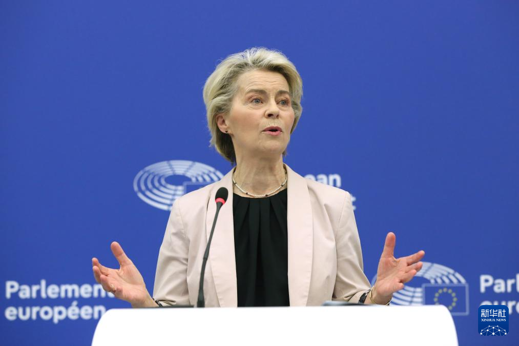 11月27日,在法国斯特拉斯堡的欧洲议会总部,连任欧盟委员会主席的冯德莱恩出席新闻发布会。