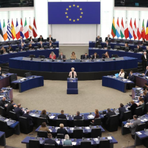 11月27日,在法国斯特拉斯堡,冯德莱恩在欧洲议会会议上讲话。