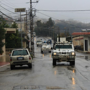 11月28日,联合国驻黎巴嫩临时部队的车辆在黎巴嫩南部迈尔杰云的道路上巡逻。