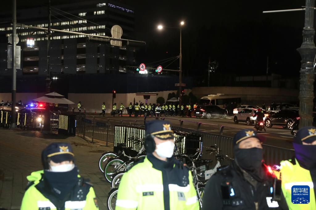 12月4日凌晨,警察在韩国首尔的韩国总统府外戒备。新华社记者 姚琪琳 摄