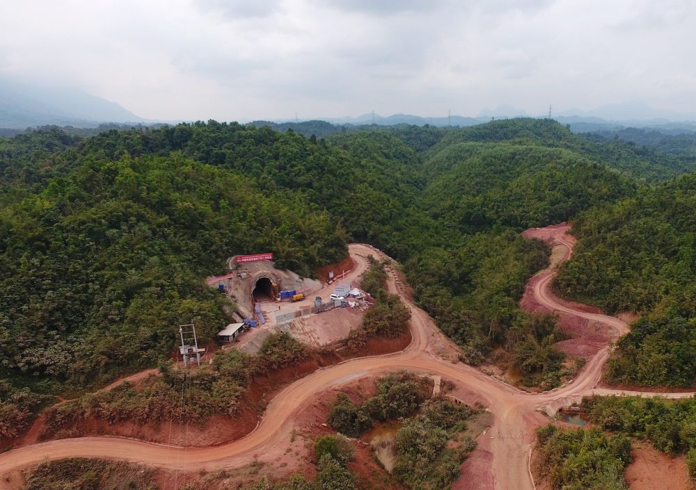 这是在老挝万象省拍摄的旺门村二号隧道(2017年12月13日摄)。该隧道于2017年12月12日顺利贯通,成为中老铁路项目全线首个贯通的隧道。