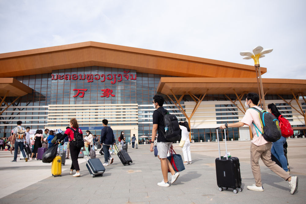2022年11月25日,乘客准备进入老挝万象火车站乘车。