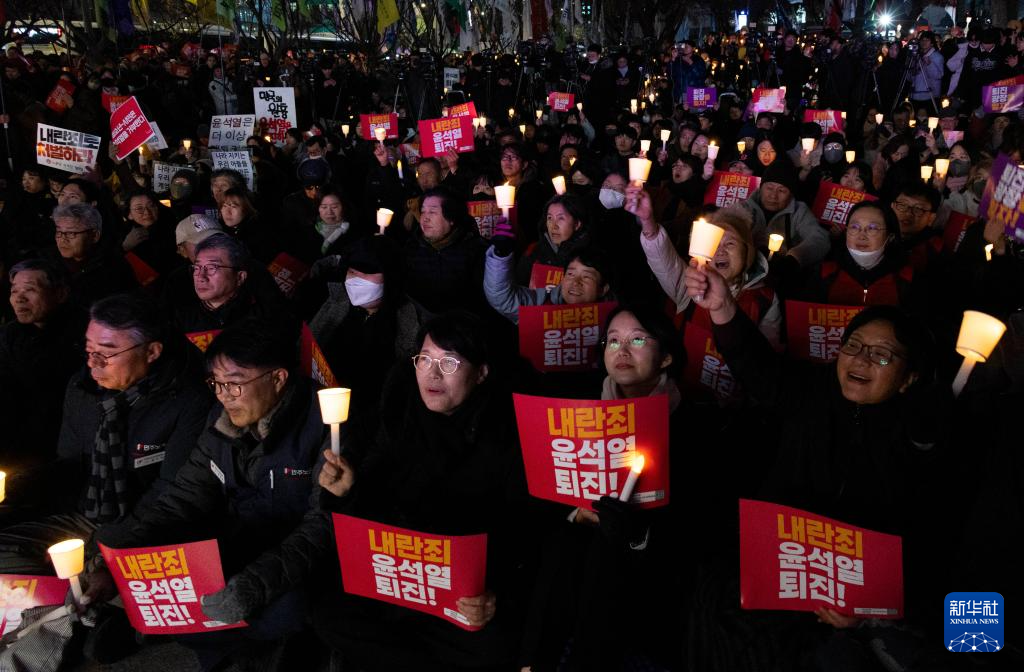 12月4日,人们在韩国首尔举行集会,要求总统尹锡悦下台。新华社发(全休相摄)