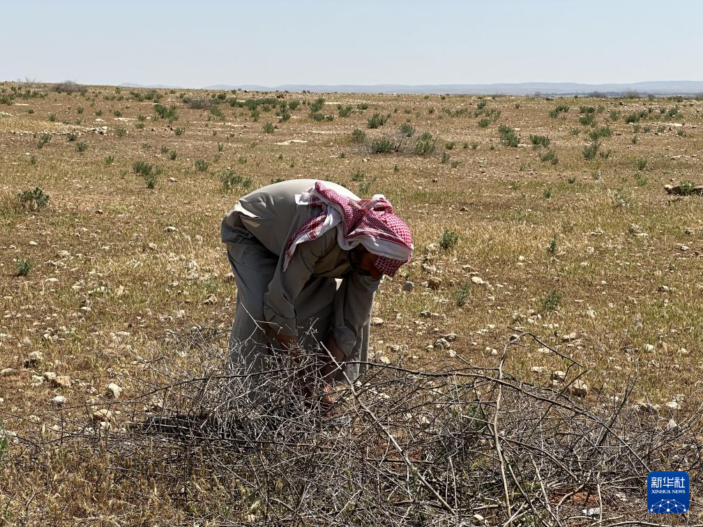 2024年4月17日,在叙利亚东部沙漠,一名“松露猎人”采挖松露(手机照片)。新华社记者 冀泽 摄
