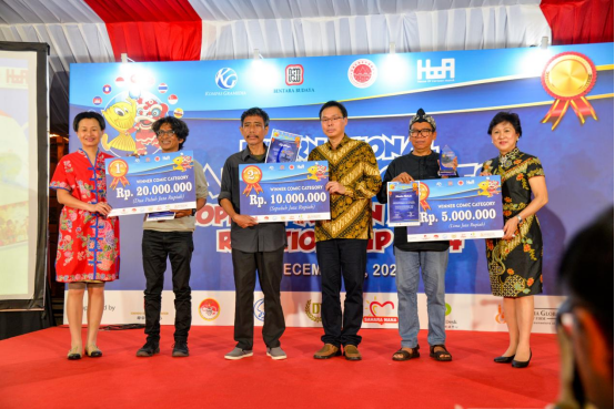 通过线上与线下两轮评选,主办方共评出26件获奖作品。颁奖典礼后在印尼罗盘媒体集团同步举行了为期7天的漫画展,重点展示了获奖作品和部分优秀初选作品共计50件。主办方还将制作专题网页,长期展示作品,并制作成纸质画册。