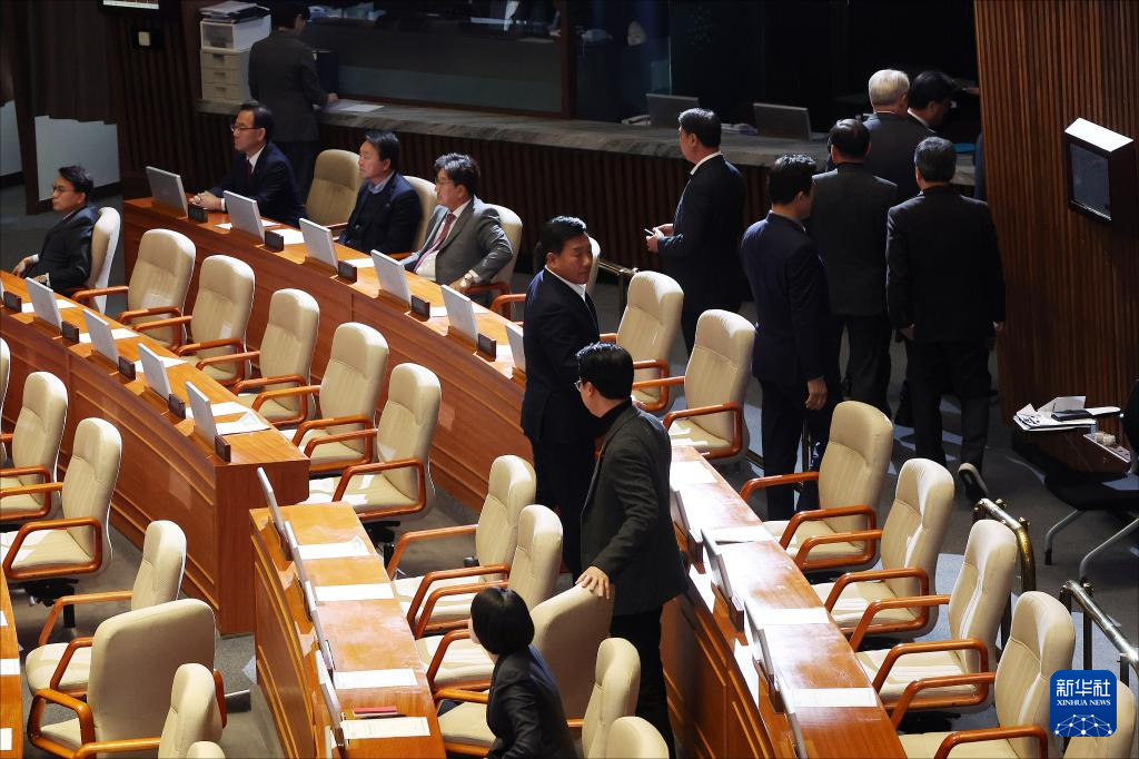 12月7日,在韩国首尔,韩国执政党议员在涉总统夫人的“金建希特检法”投票结束后陆续退场,不参加弹劾尹锡悦动议案的国会投票。新华社发