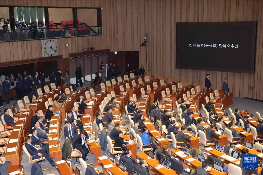 12月7日,在韩国首尔,韩国国会议员就弹劾总统尹锡悦动议案进行投票。新华社发